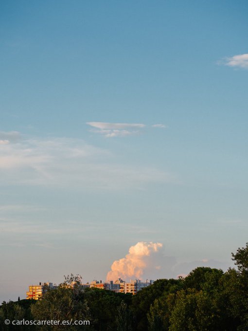 Algunos cúmulo-nimbos se alzan con el calor en la tarde, aunque no habrá mayor historia tormentosa.