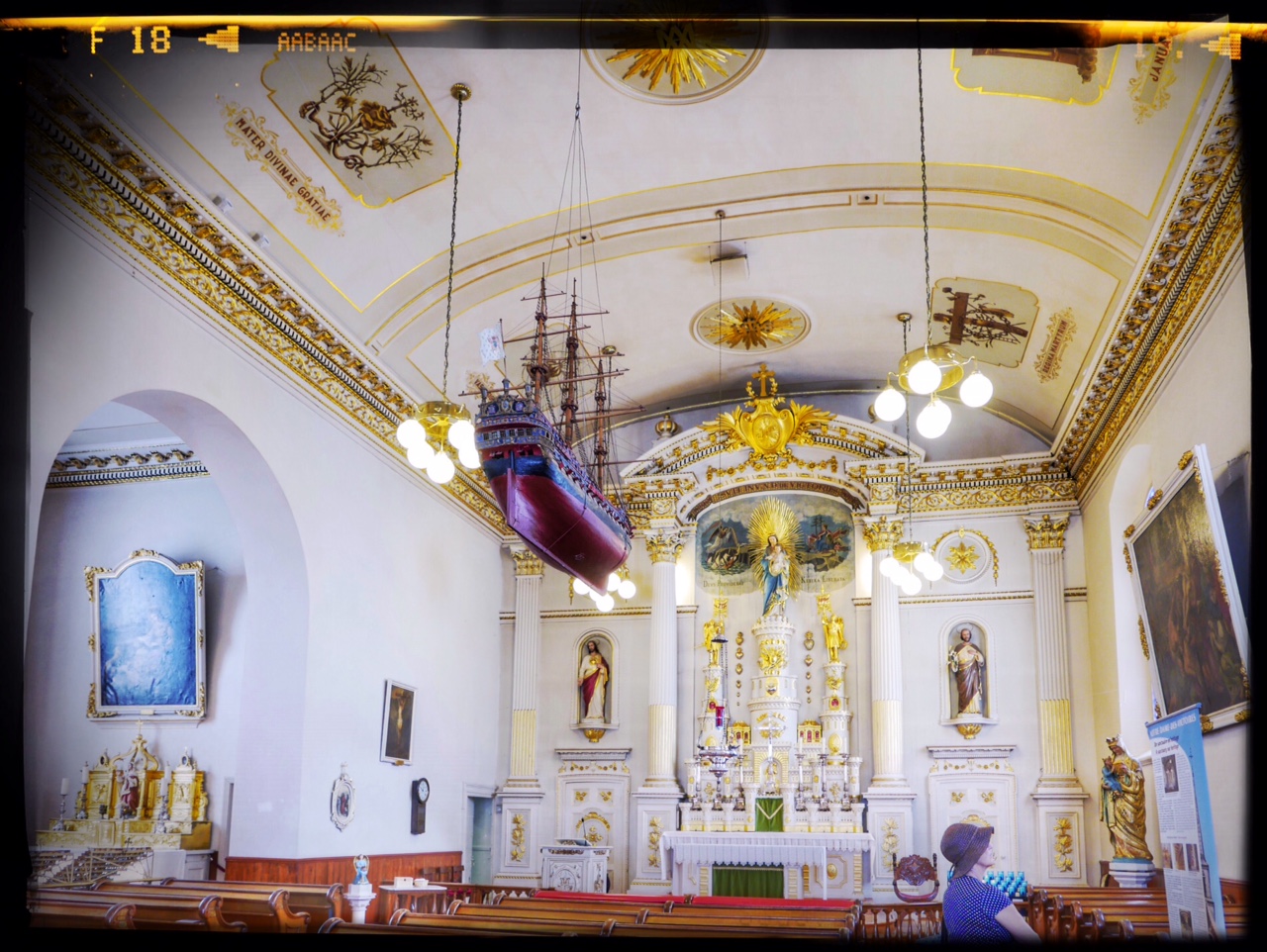 Viajes – el blanco interior de Notre Dame des Victoires, en Quebec.