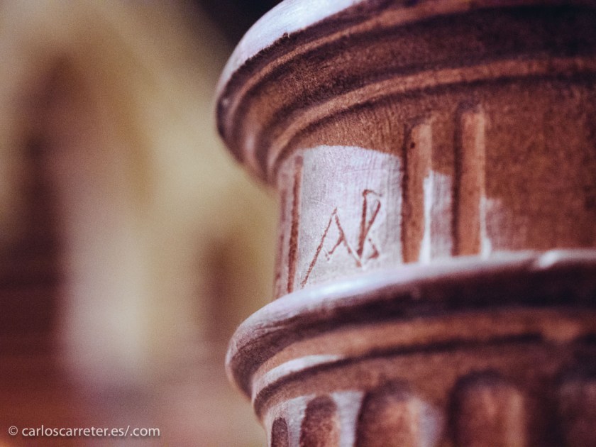 Inscripciones en una de las columnas. Se me olvidó preguntar si se debían a los canteros originales o la catalogación de las piezas para su traslado a París, y para el trayecto inverso.