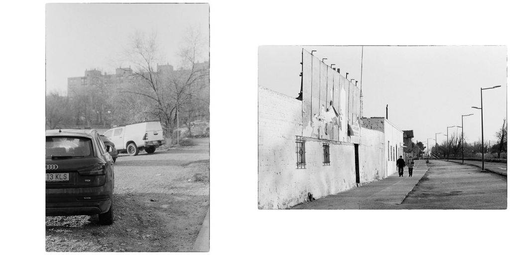 El «dogma» de la fotografía callejera es usar películas de sensibilidades relativamente alta, para poder seguir fotografiando en cualquier circunstancia de luz que nos encontremos. Pero si privilegias el paisaje urbano, y conseguir un buen detalle de edificios y otros elementos de este paisaje, consigues más nitidez con películas de baja sensibilidad.
