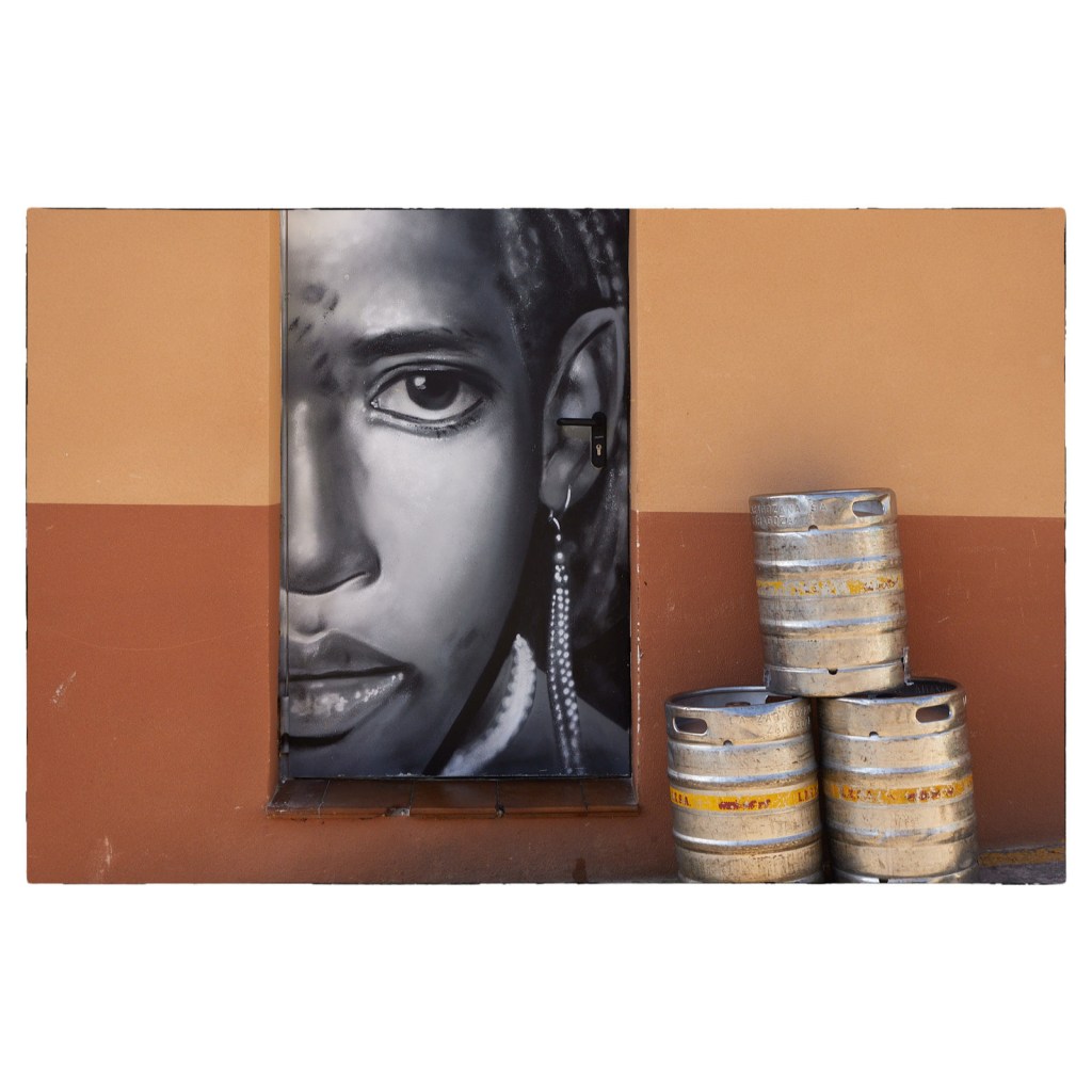Por la mañana y hasta después de comer, recorrimos la población de Torrellas, apenas a cinco kilómetros de Tarazona, cerca del límite occidental de Aragón, próxima a Castilla. Una población de cierta importancia en la edad media, con abundante población morisca, que tras la población de esta minoría, perdió buena parte de su empaque. Su situación cuasifronteriza hizo que fue lugar donde se firmaron importantes tratados. Pero lo que nos llevó allí en esta ocasión es su colección de arte urbano en forma de grandes murales pintados y de unas estupendas puertas, también pintadas, que representan a los pueblos del mundo. Parecía que iba a sobrar mañana, dado que el pueblo es pequeño, pero lo cierto es que la ocupamos toda, y no nos fuimos del lugar hasta que nos refrescamos con unas cervezas y dimos cuenta de unos platos combinados o bocadillos, según el gusto de cada cual.