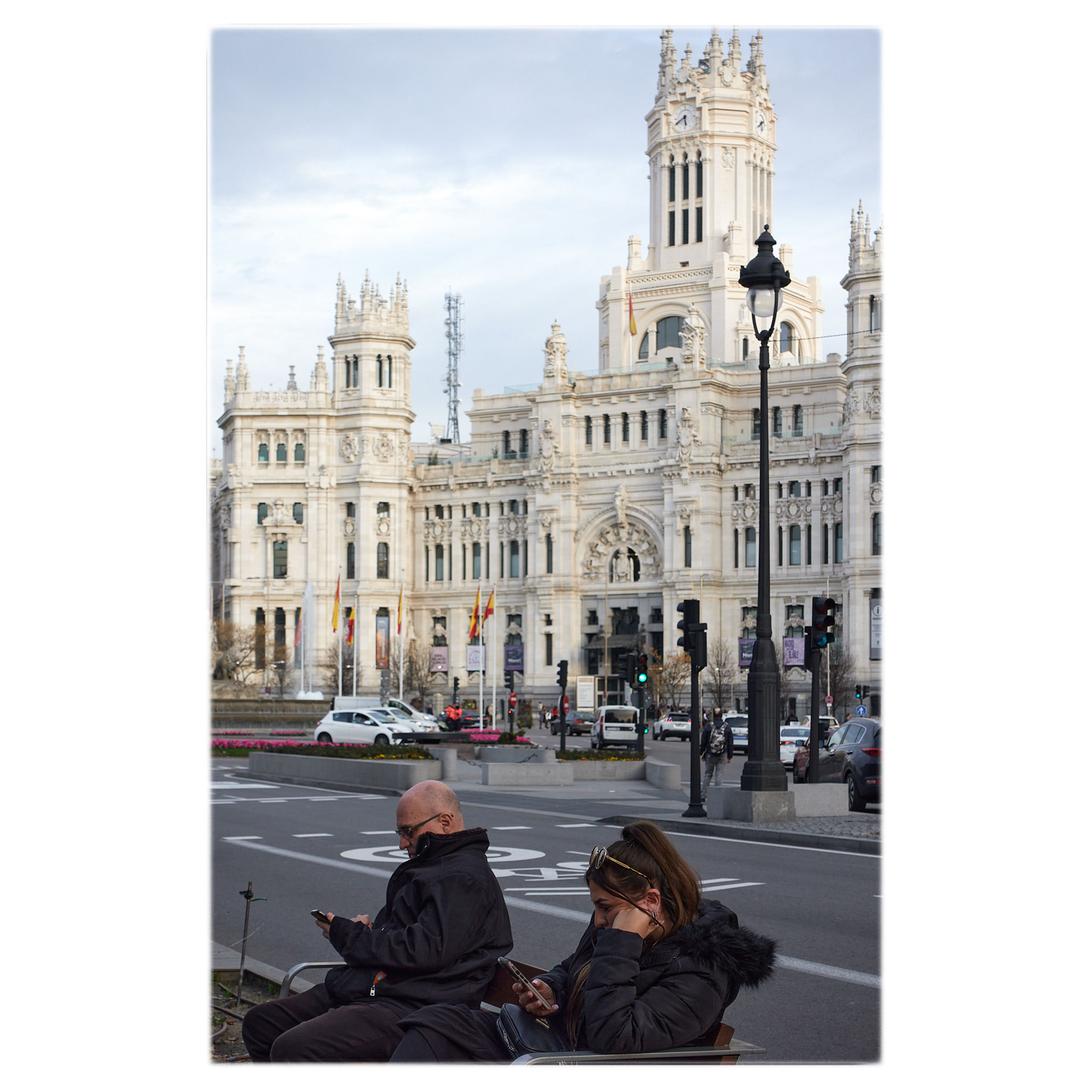 Comimos, un poco tarde, unos platos de jamón y queso, en las proximidades del Palacio Real, carísimos para la calidad que tenían. No estaban mal, pero no se justificaba el precio. Y luego ya nos dirigimos a realizar algunas compras por diversos lugares. Compré película fotográfica, que paradójicamente encontré barata en la FNAC y no en comercios especializados, y algunos libros de fotografía en La Fábrica, de los que os hablaré otro día. Y ya, de vuelta a casa. Un agradable día, soleado pero con luz suave, y temperaturas desusadamente elevadas para la época. Vamos,… que el chaquetón entró en mi mochila cuando llegué a Madrid, y no me lo volvía a poner hasta que llegué a la niebla de Zaragoza.