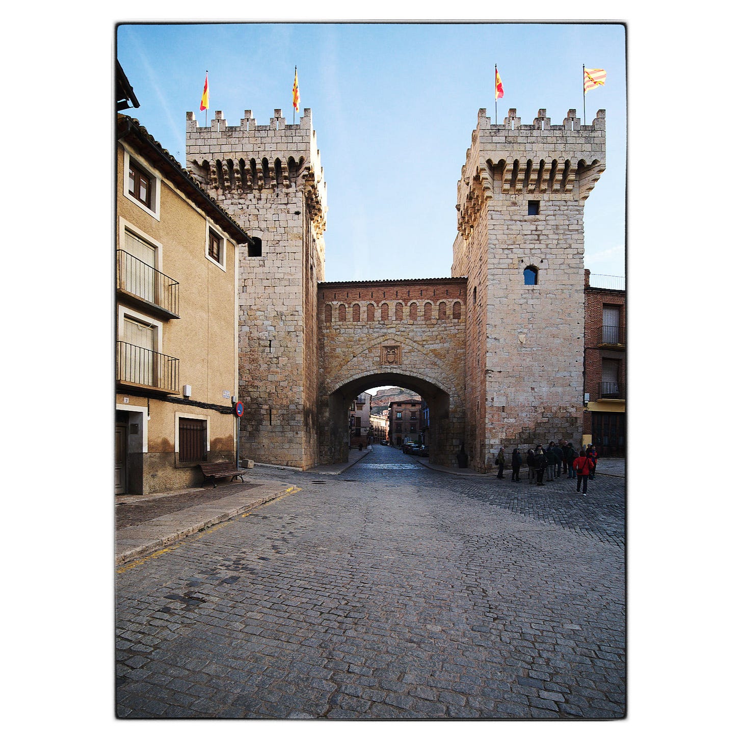 Lo que recorrimos fueron algunos de los restos arqueológicos de las fortalezas que protegían la ciudad durante el siglo XI, con las murallas correspondientes, así como la Mina, un diversión de las aguas torrenciales que eventualmente asolaban la ciudad, a través de un túnel de más de medio kilómetro de longitud excavado bajo el cerro de San Jorge, realizado a mediados del siglo XVI, una impresionante obra de ingeniería para la época. Canaliza las aguas torrenciales hacia el río Jiloca, evitando el centro de la ciudad.