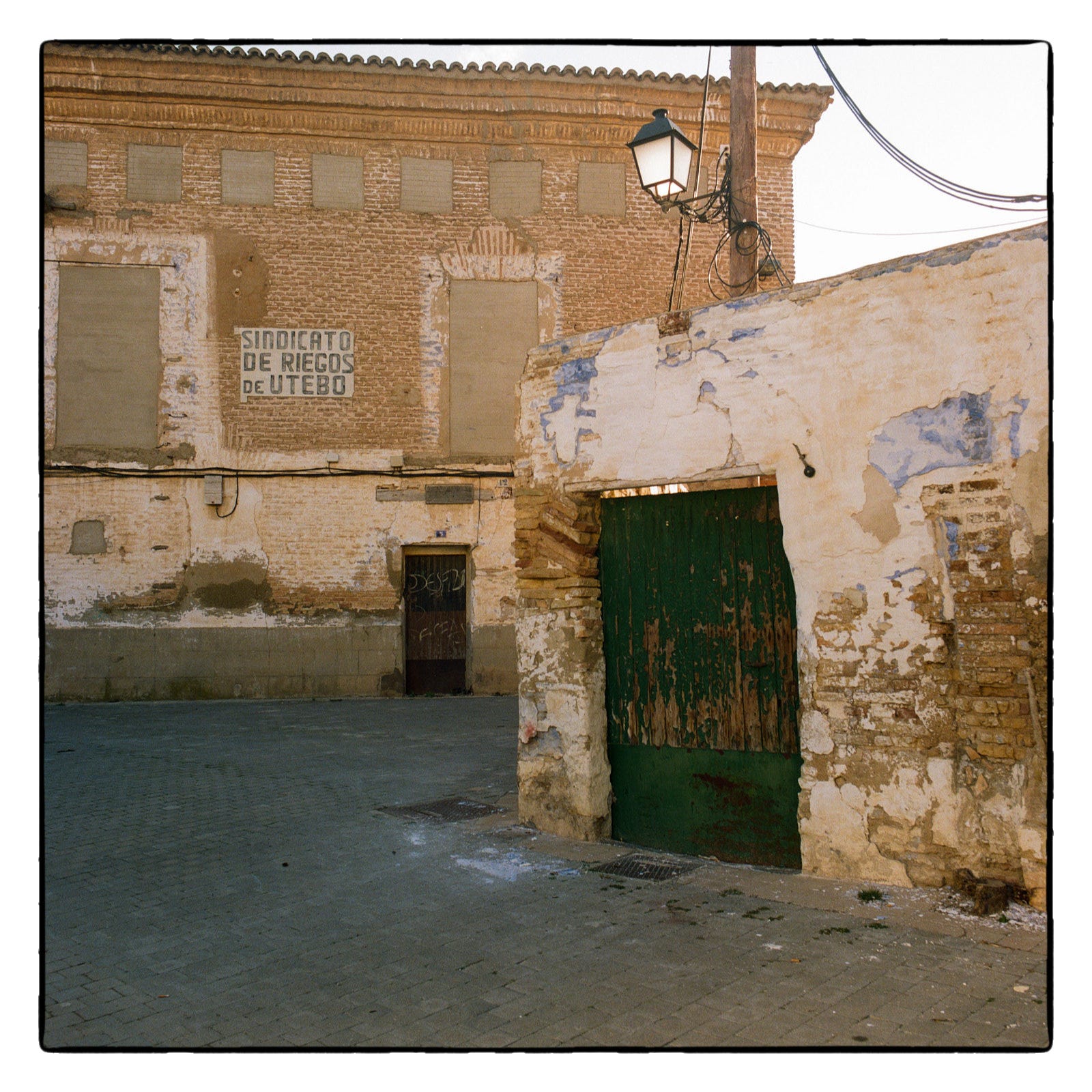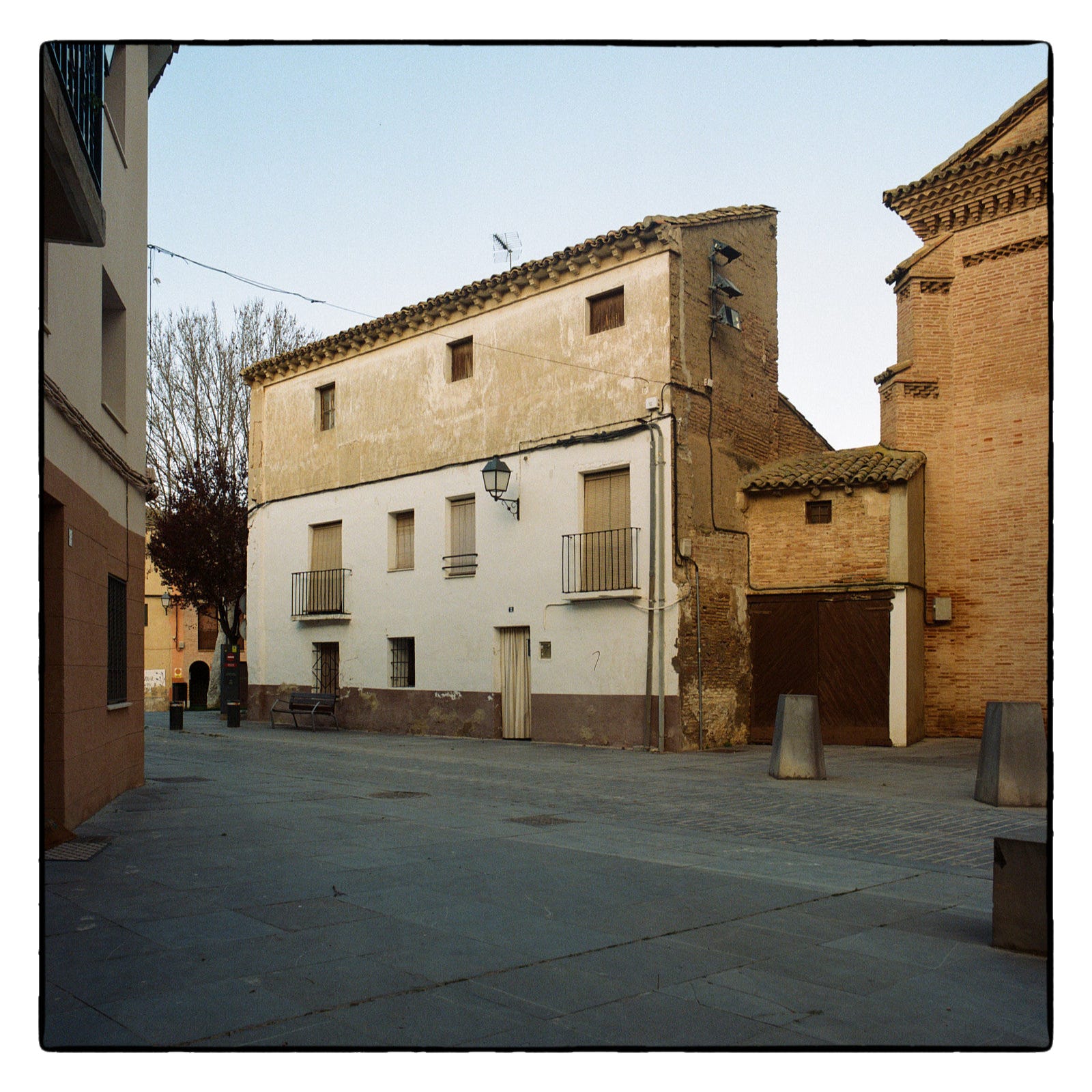 En fin. Os dejo con unas fotografías realizadas en un sábado por la tarde de marzo con la Hasselblad en el casco histórico de Utebo. Lo que más me impresiona es que no me tuve que esforzar nada en absoluto en que las calles salieran vacías de gente. Prácticamente no me crucé con nadie entre las cinco y las seis y media de la tarde. Al otro lado de las vías del ferrocarril era otra cosa. Mucho más animado. Pero allí no hice fotos.