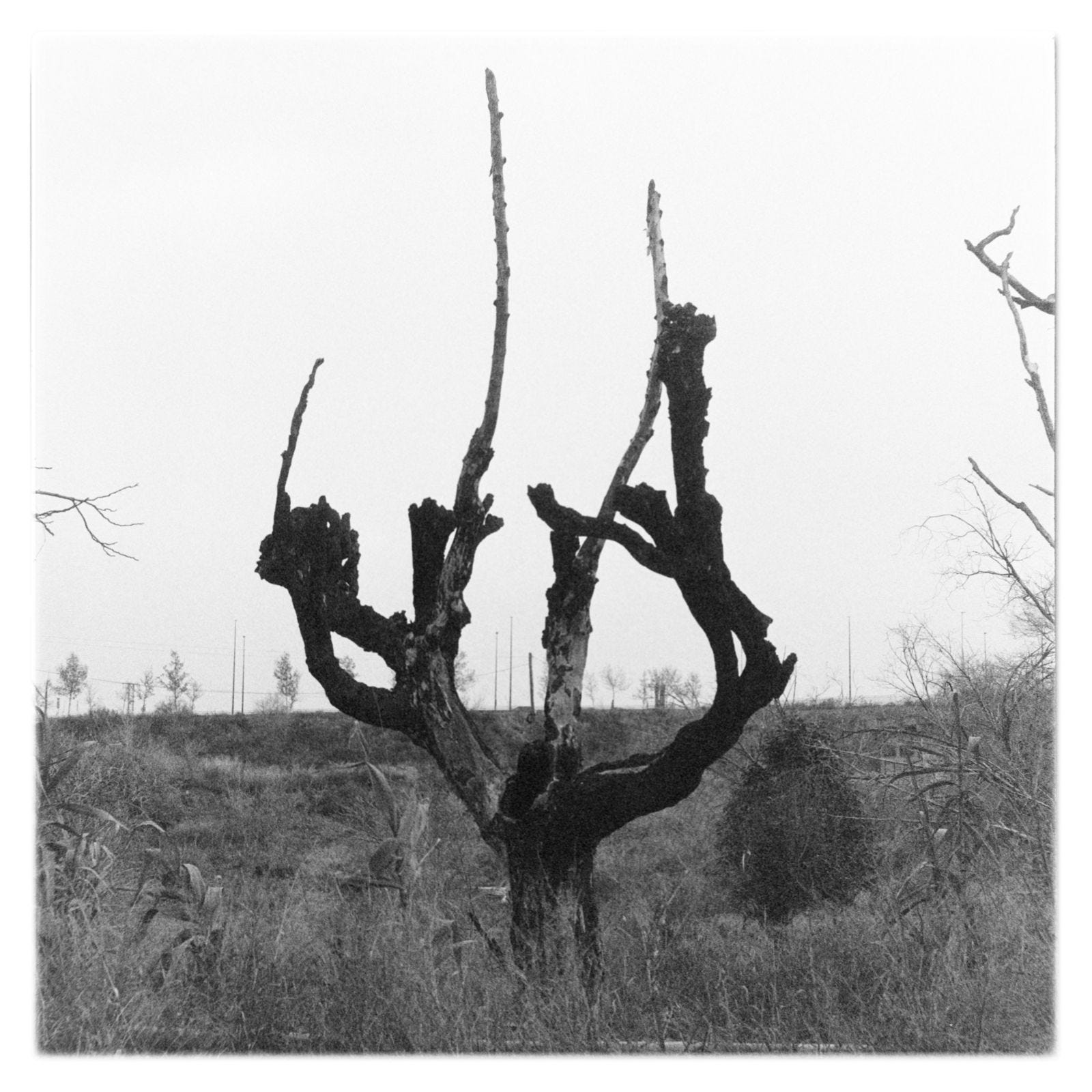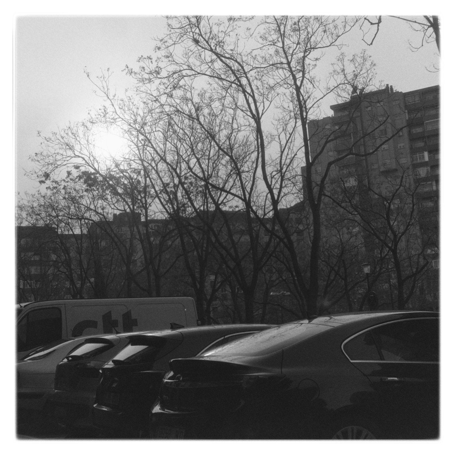 En los primeros días del año, continuó la tónica de los últimos, más o menos. Con días de niebla alternando con los días despejados, pero muy ventosos. En esta ocasión, dada la situación, decidí salirme de los materiales habituales. Aunque la cámara de formato medio utilizada es habitual en las fotos de estas páginas, el respaldo usado permite hacer 16 exposiciones en lugar de las 12 habituales, aunque un 40 % más pequeñas. Y la película de alta sensibilidad da una estética más granulosa y menos definida. Quizá le venga bien a los días de invierno.