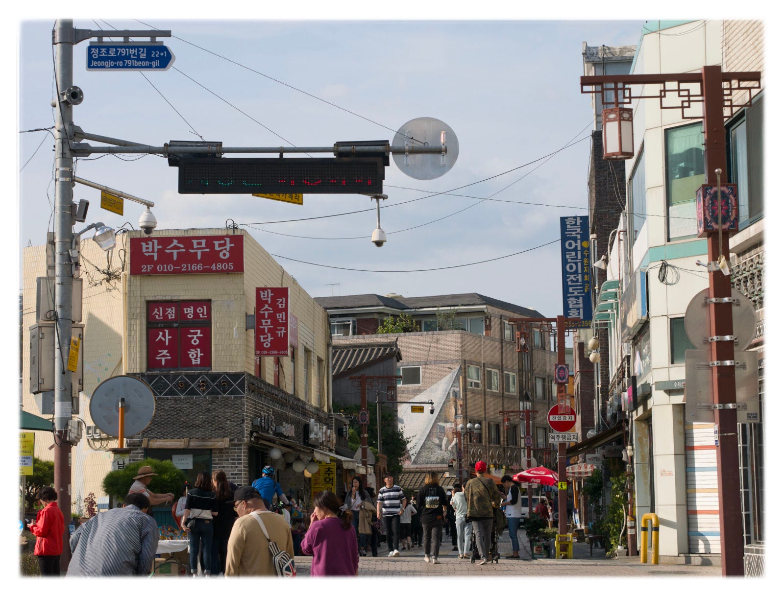 Las series de fotografías que ilustran esta entradas de este Cuaderno de ruta pueden verse, desprovistas de texto, en fotos en serie. En las calles de Suwon.
