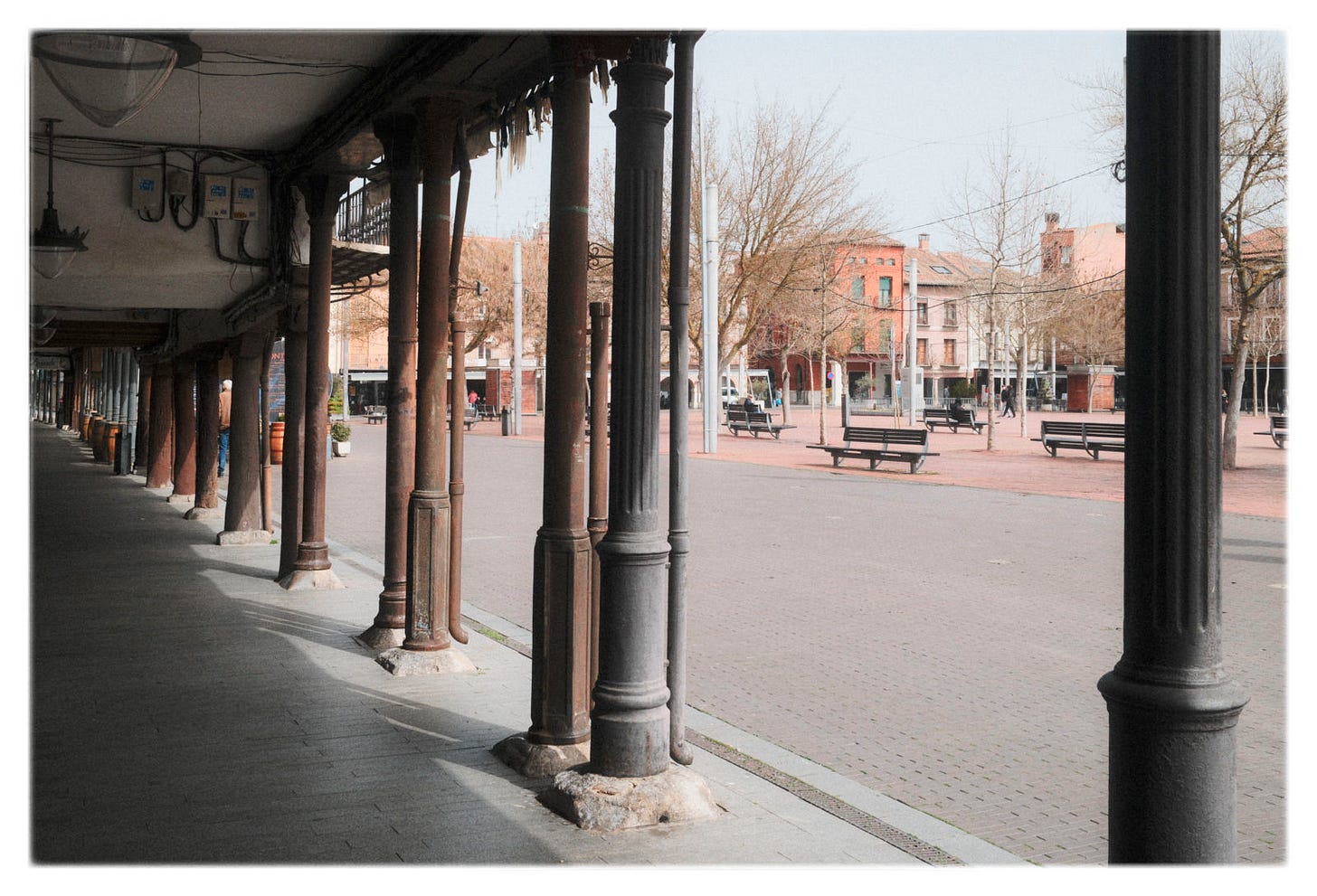 Como vimos que teníamos tiempo de sobra, y ante la recomendación de alguien que conocimos, pasamos una tarde en Medina del Campo. Esta a 35 minutos en tren desde Salamanca. Y yo la recordaba de las clases de ciencias sociales de la EGB como uno de los dos “nudos ferroviarios” de Castilla la Vieja, junto Venta de Baños. A los tecnócratas que dominaron el tardofranquismo parecía que eso de los nudos ferroviarios y los polos de desarrollo, y los pueblos de colonización y la concentración parcelaria, les importaba mucho. Es curioso lo similares que son las dialécticas de todas las dictaduras. La de sus odiados países comunistas también insistía en logros y conceptos similares. Muy parecidos.