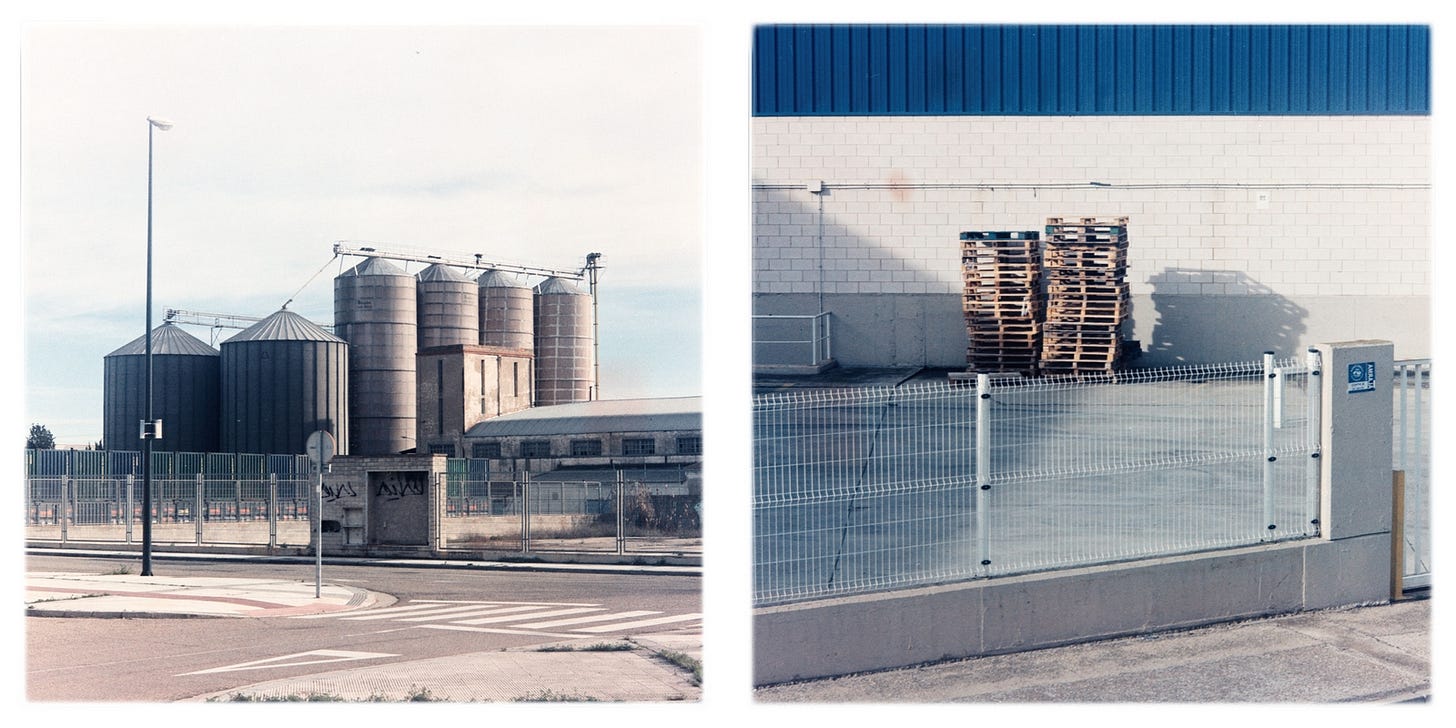 Por ello, en este principio de año, he visitado varias veces los entornos ferroviarios e industriales que hay en Zaragoza en el Polígono Cogullada y sus alrededores. Hay una estación de clasificación para trenes de mercancías que sirven industrias próximas, que también forman parte del paisaje Y lo exploro con distintos tipos de materiales sensibles. En esta ocasión, con película negativo en color, con un rendimiento particular de los tonos de color. Os dejo unas muestras.