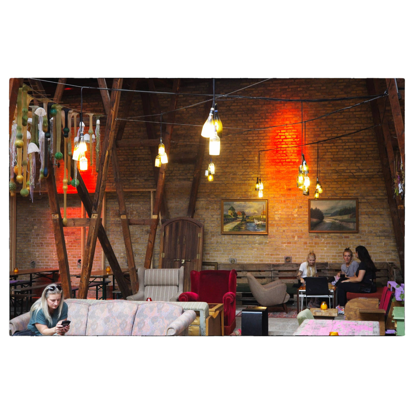 Tras comprar un ligero refrigerio, especialmente líquido, tienen un excelente zumo de pomelo exprimido, en la tienda de conveniencia de la estación, atravesamos el centro de la ciudad, muy agradable para pasear, para llegar al Nordkraft, un centro de cultura y ocio que ocupa una antigua central eléctrica en el centro de la ciudad. Visitamos alguna exposición y curioseamos un poco, aunque estaba poco concurrido a las 12 del mediodía.