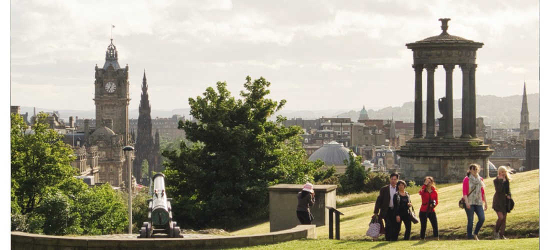 Excelentes vistas de la ciudad de Edimburgo se disfrutan desde la agradable colina de Calton Hill.