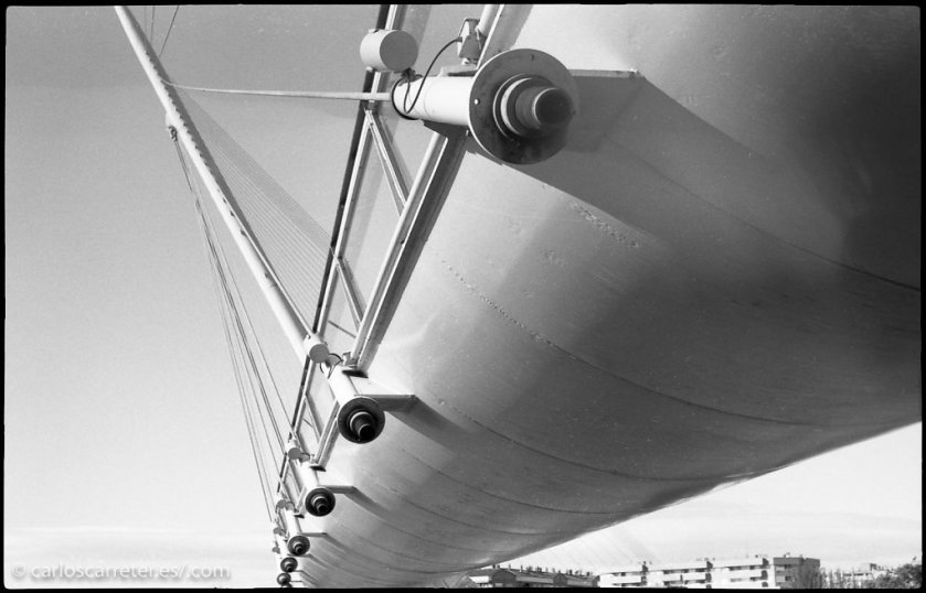 Con motivo de la exposición de Nadav Kander en el Museo Pablo Gargallo, aprovechamos para realizar un paseo por el barrio de San Pablo. Previamente, un instituto de la ciudad había cedido a la asociación algunos materiales de fotografía fotoquímica que ya no usan para su formación en audiovisual, entre ellos algunos rollos caducados de Kodak Ektachrome 100. Usé uno ese día. Que no fue mal, una vez tomada la precaución de considerar que su sensibilidad había quedado reducida a la mitad.