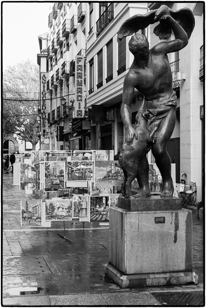 Hemos pasado por la Plaza Mayor, donde nos han sorprendido las pinturas de mujeres raciales vestidas de rojo que se repetían en diversos puestos. ¿A todos los pintores se les ocurre el mismo tema?
