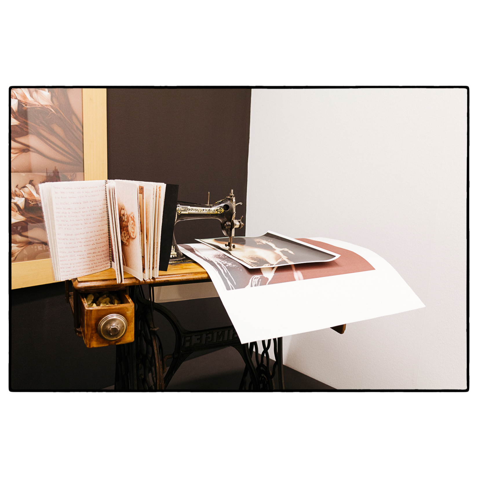 Expuestos, entre las abundantes fotografías, algunos de los libros técnicos de la biblioteca de Álvarez Bravo.